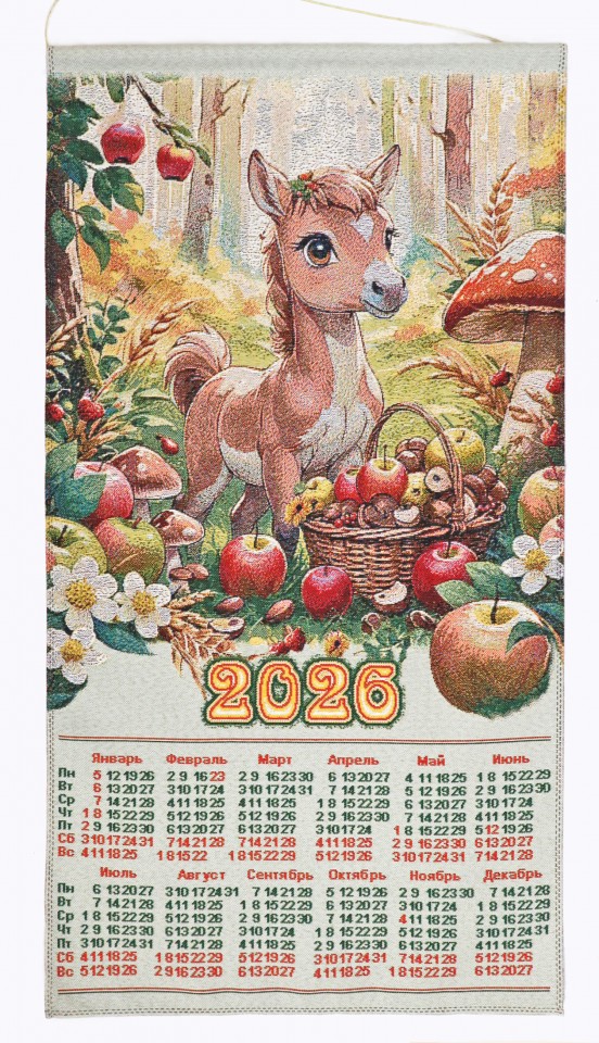 Календарь 2026 г. "Коняшка" 38х68 см гобеленовый на подвесе
